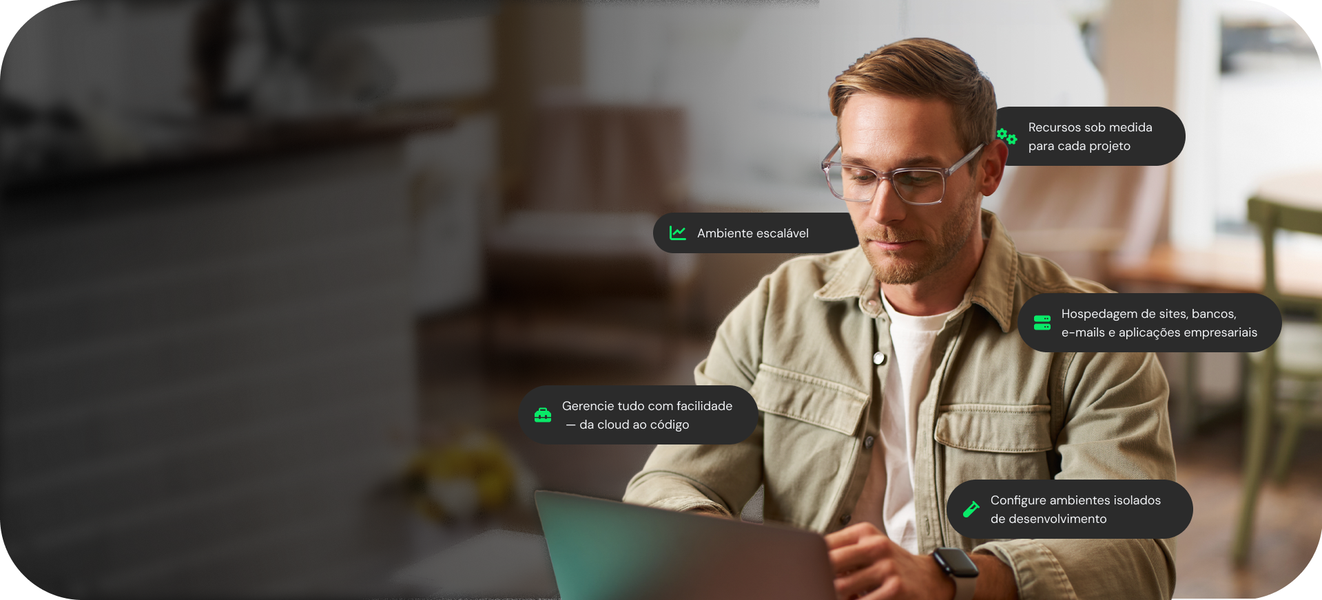 Com certeza. Você pode ajustar CPU, memória, armazenamento e rede em tempo real, conforme a demanda da sua operação. Nossa nuvem pública foi criada para crescer junto com seu negócio — seja em campanhas, sazonalidades ou expansão.