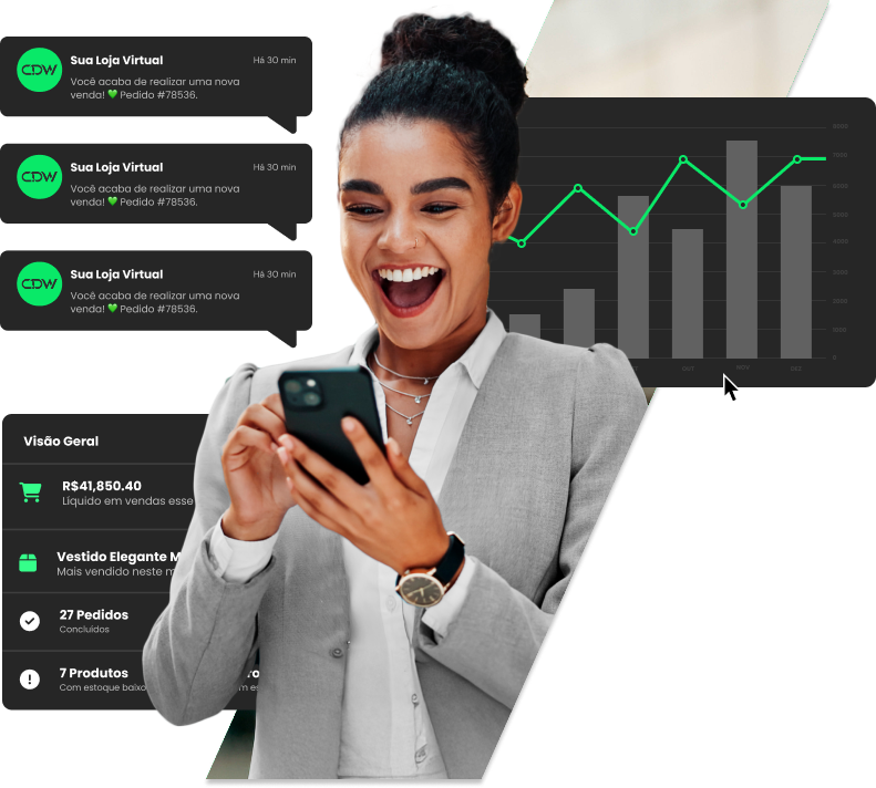 Crie uma loja virtual de sucesso e alcance clientes em todo o mundo. Venda seus produtos e expanda seus negócios com a ajuda da CDW Tech, a agência de design e web especializada em lojas virtuais.
