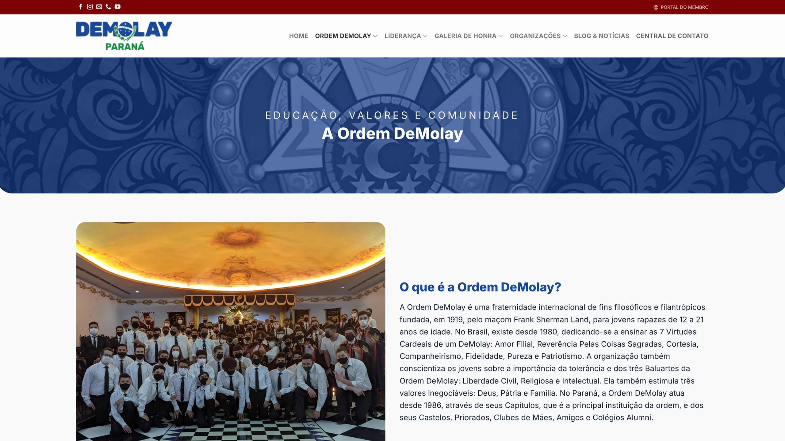 Desenvolvemos um site institucional moderno e personalizado para a DeMolay Paraná, destacando informações sobre a organização, suas lideranças, organizações afiliadas e uma galeria de honra para reconhecer membros notáveis.
