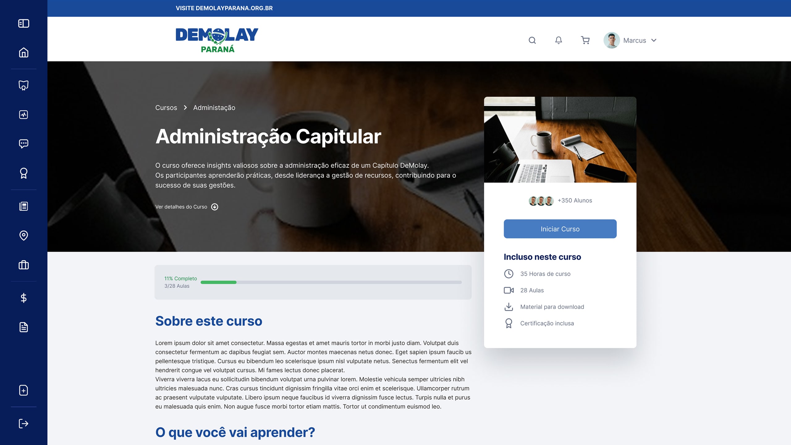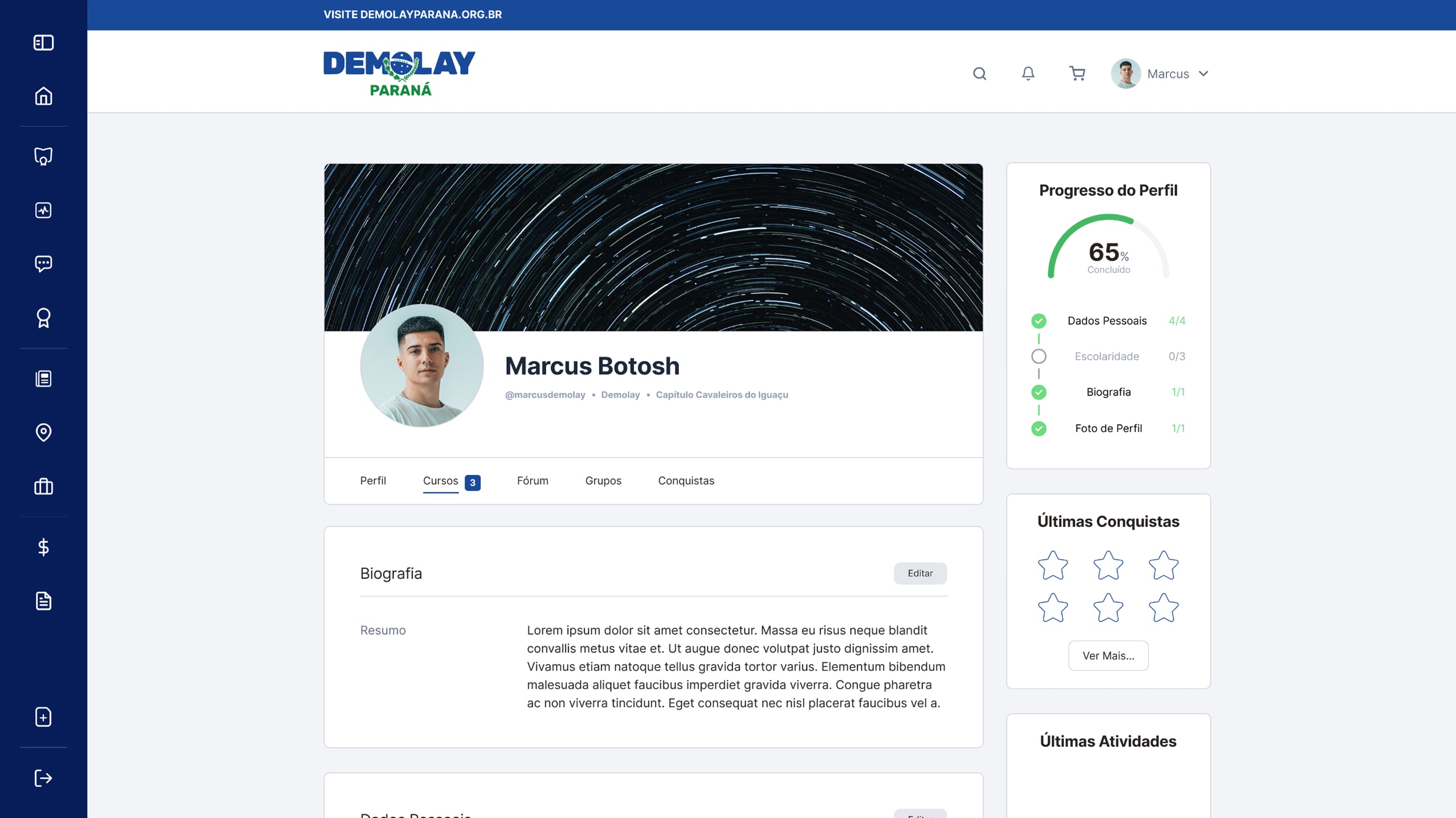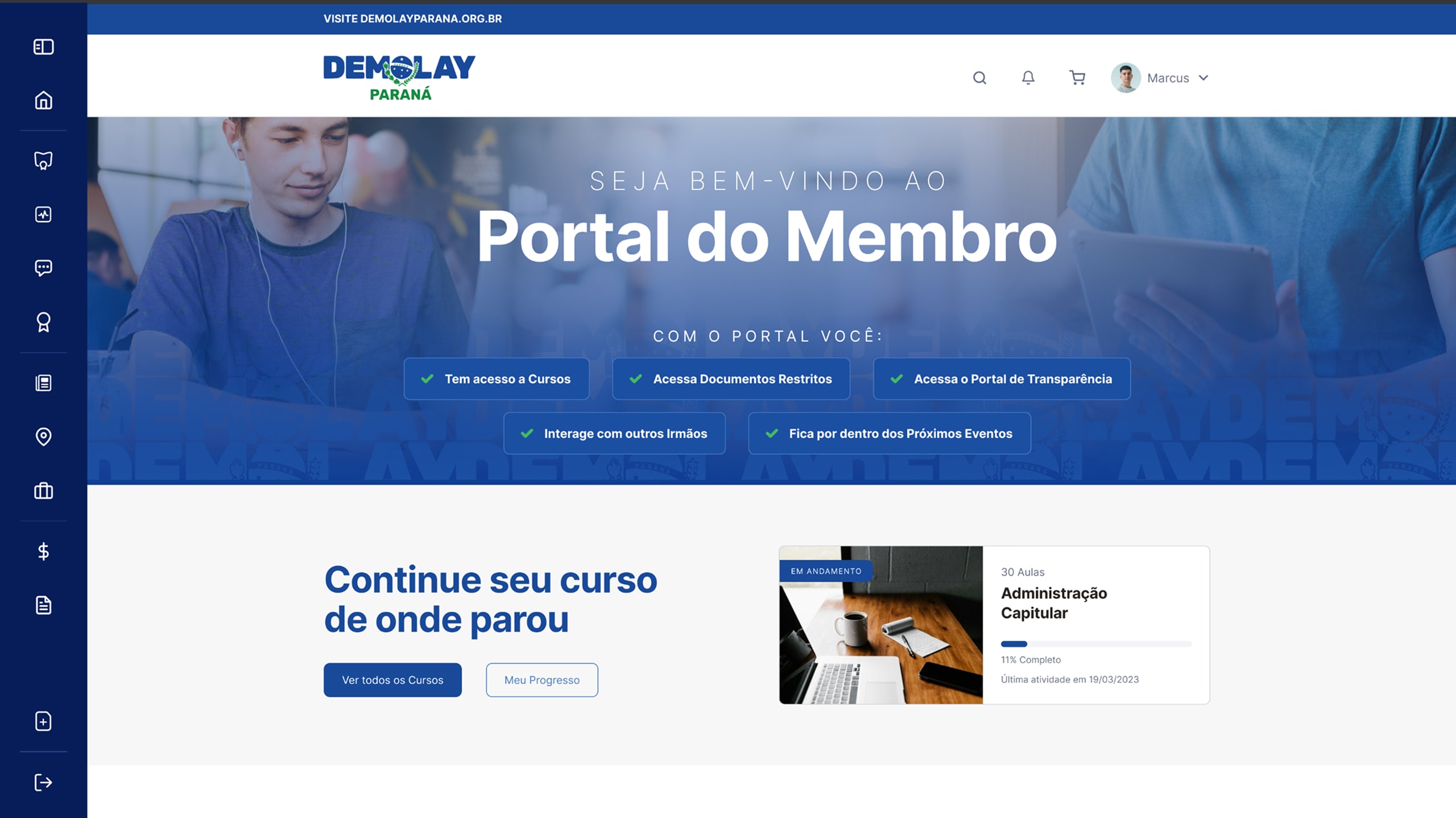 Criamos uma plataforma interna onde os membros podem acessar cursos, cadastrar currículos e participar de fóruns, promovendo o engajamento e o desenvolvimento contínuo dentro da comunidade DeMolay.