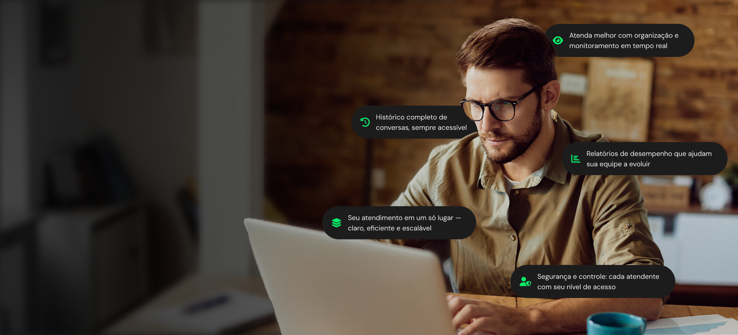 Pare de perder clientes por atendimento lento! Transforme seu WhatsApp em uma central profissional que atende múltiplos clientes simultaneamente, organiza sua equipe e dispara suas vendas.